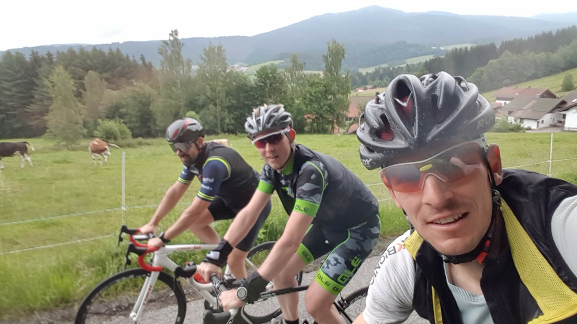 Johannes radelt nun an meiner Seite. Kurze Zeit später kommt auch noch Daniel hinzu und komplettiert unseren „Bayerischen Kreisel“. Die Unterhaltung tut gut! Wir haben Spaß und die Runden purzeln gerade zu.