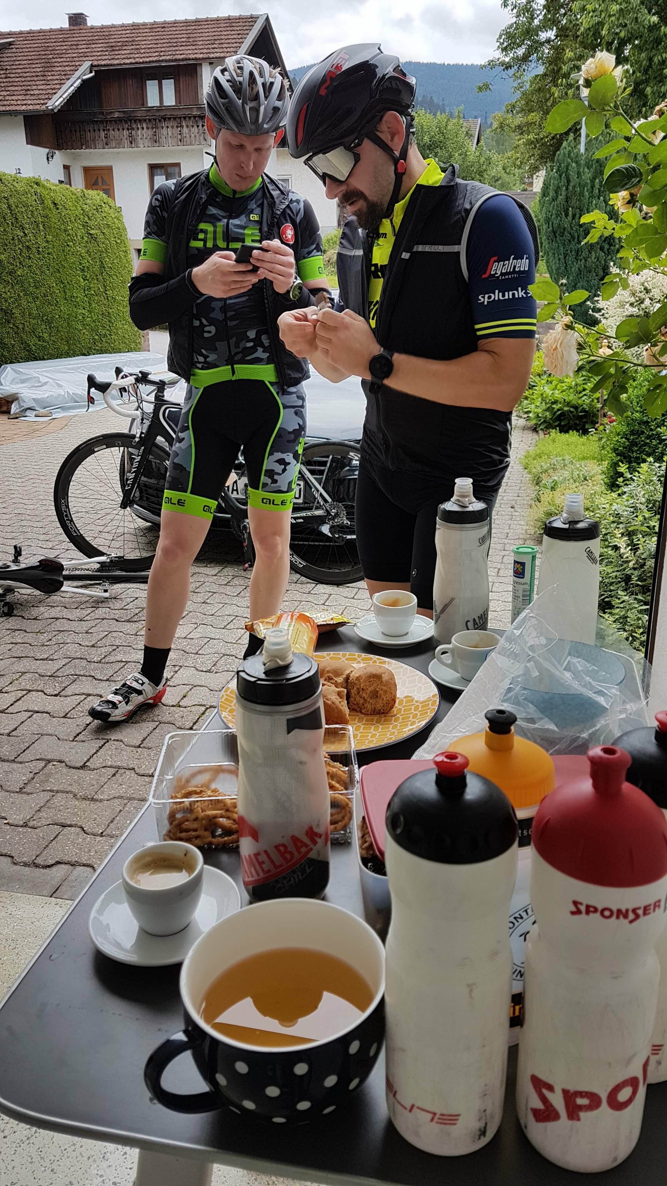 Boxenstopp. Noch kurz einen Espresso und weiter geht’s. Die Sonne zeigt sich jetzt auch mal. Und mit der Vorfreude, dass sich ab 9 Uhr Johannes als Begleitung angekündigt hat, läuft es jetzt richtig gut.